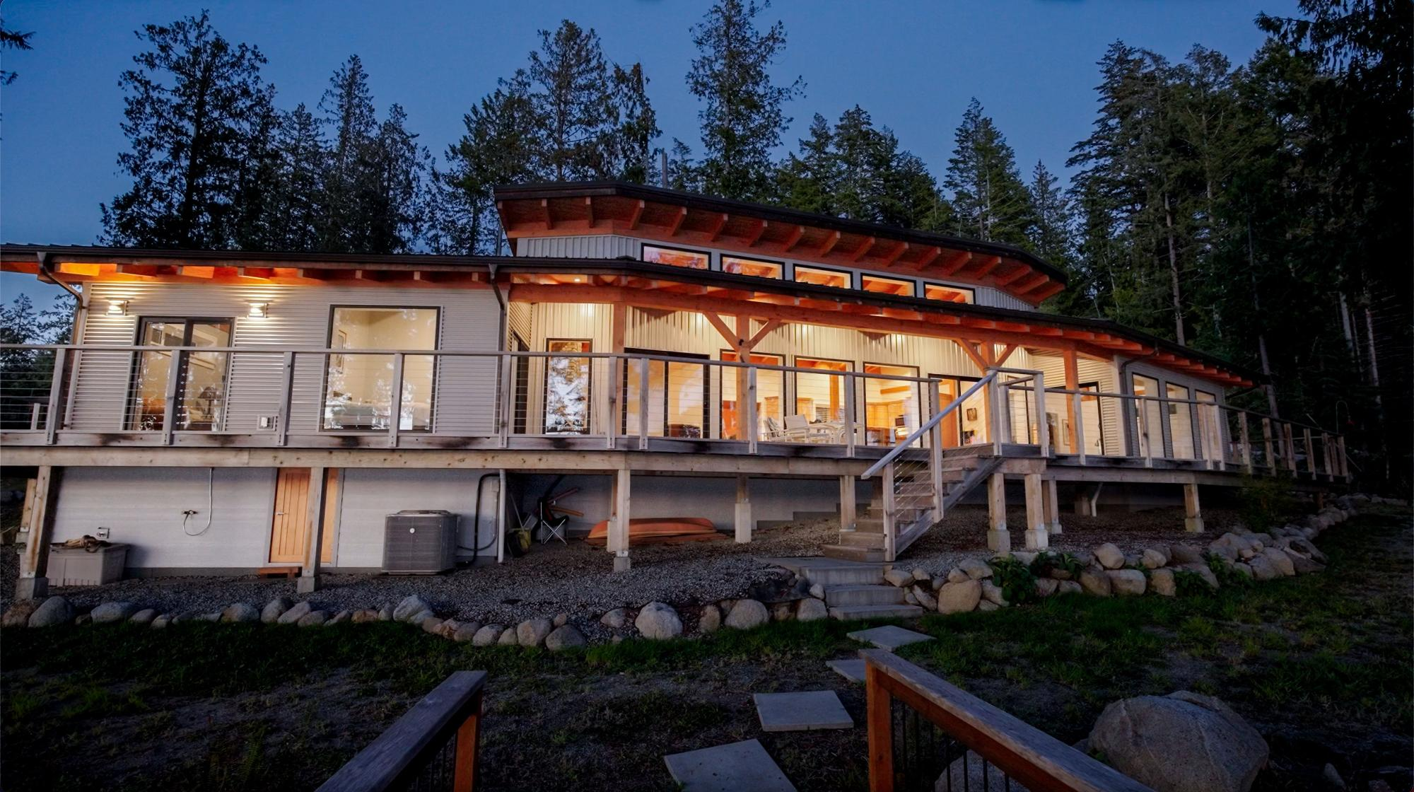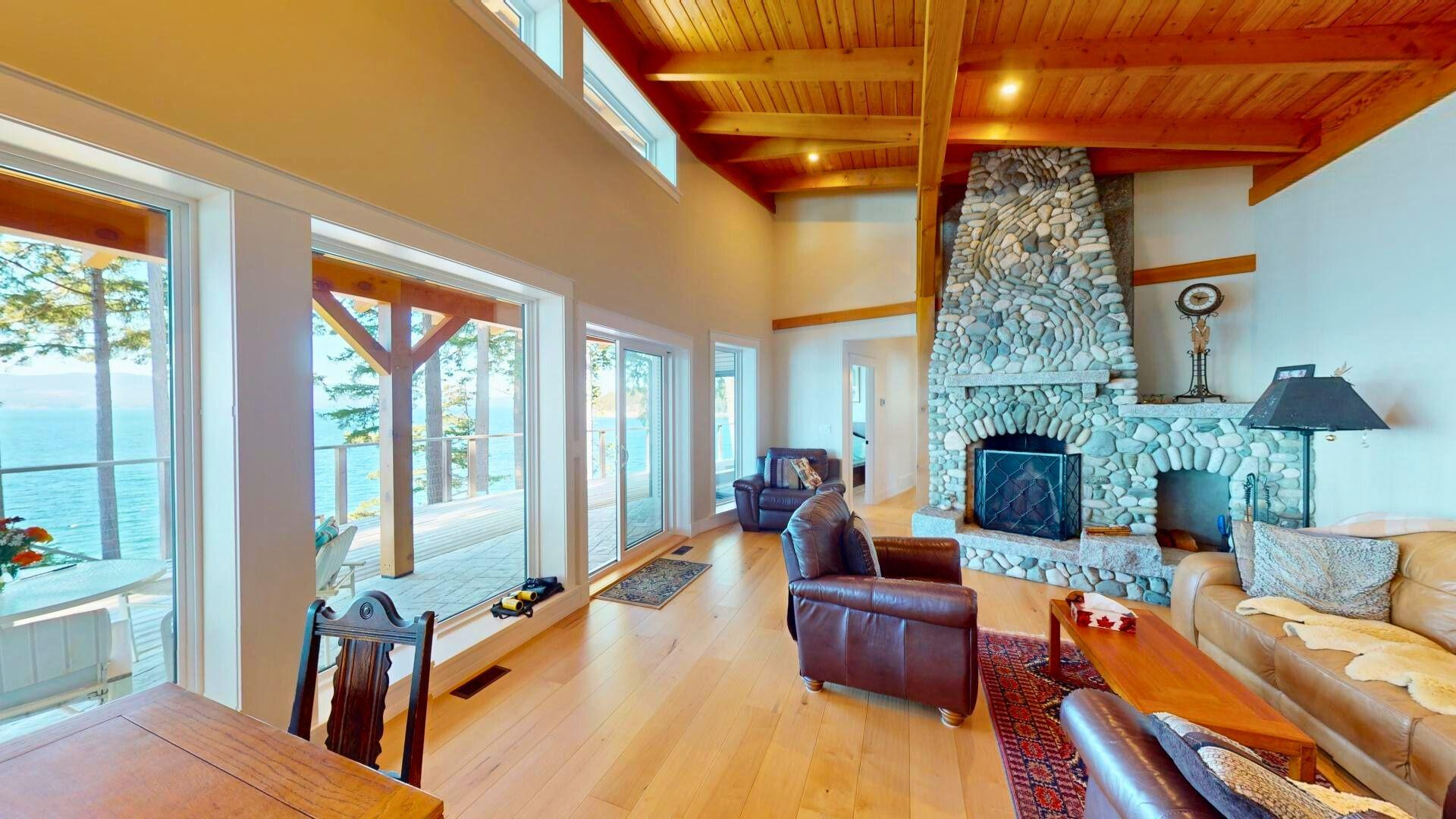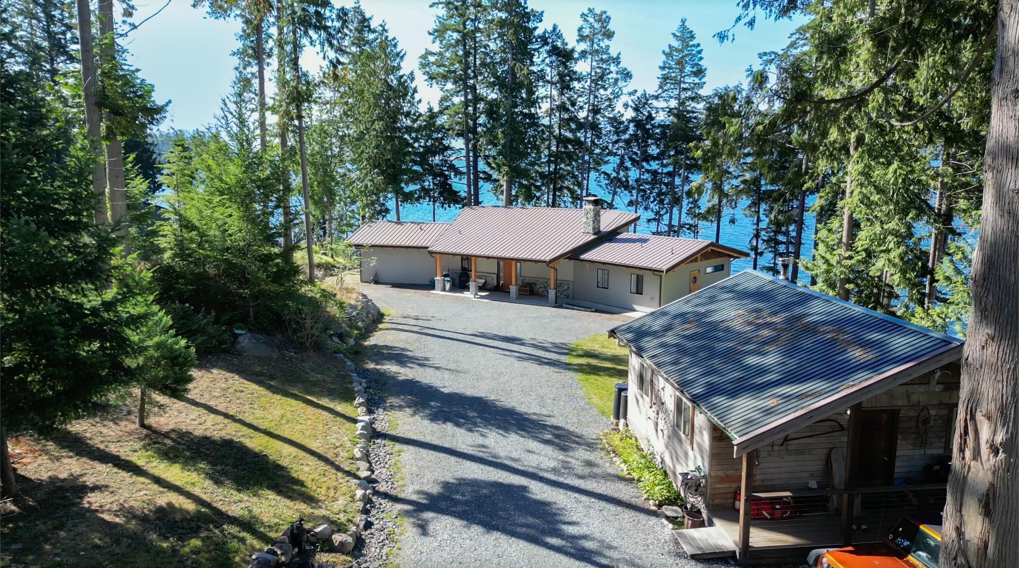 Located in Frolander Bay just south of Powell River, this 1.81 acre property offers a perfect blend of rural tranquility and modern amenities. Built in 2019, the two bedroom, 1700 sf home overlooks Malaspina Strait and features an open-concept design, a river rock fireplace, and stunning ocean views from every room. The functional single-level layout includes a large master bedroom with a walk-in-closet and ensuite. Tons of outdoor living space with 298 sf covered patio and 865 sf deck overlooking the water. The studio guest cabin is self-contained and the 38x40 ft shop is well equipped with 20 solar panels and rainwater collection system.